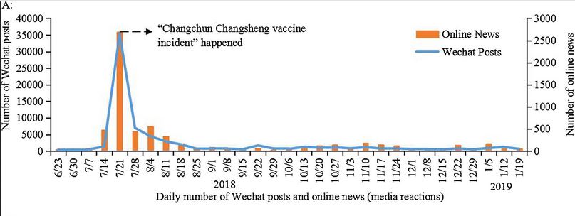 The study revealed that media and public interest in vaccination increased sharply around the CCVI. Two weeks before the CCVI, there were on average only 62 online news articles and 483 WeChat posts on vaccines daily. This increased to 2,698 and 35,310 per day the first week after the CCVI was reported publicly. Public responses changed even more rapidly than online news. However, one month later, both media reports and public reactions declined to the level before the CCVI and remained stable until January 2019.