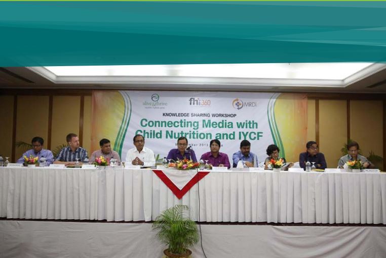 • Journalist training and sensitisation workshop on IYCF: a two-day residential training course for 23 health reporters from national print and electronic media, including "hands-on experience through mock interview sessions, story development, and feedback by seasoned journalists."
