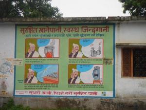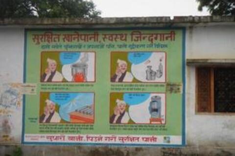 - Mass Promotion and Media Campaign: Fact sheets summarising each of 4 water treatment technologies (locally produced sodium hypochlorite solution (Piyush and WaterGuard), improved boiling, solar disinfection (SODIS), and filters, especially colloidal silver (CS) filters) were developed for policy-level officials and decision makers. Materials to help frontline workers conduct training, orientation, and awareness-building within their communities were more in-depth and included a technical manual and flipcharts. Frontline workers distributed posters, calendars, brochures, and stickers to households as part of the door-to-door village level promotional campaign. An interactive children's book describing the importance of water and sanitation and key actions to take was developed. Designed to balance ethnic and geographic consciousness, the materials were reviewed by a task force of key water and sanitation stakeholders and pretested for clarity and understanding. Radio and television spots with messages of safe water and handwashing practices were produced in Nepali for a national audience and in the 4 major regional languages of the NHIP-focused districts. Village-level promotion included street dramas that reached an estimated 70,000 villagers, and trained staff from 20 local NGOs reached approximately 180,000 households through door-to-door promotion activities.