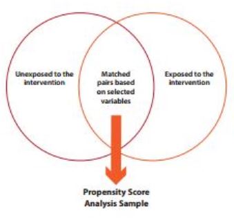 According to the primer, PSM can be used to control for people's response bias when a control group for a RCT is no possible. It can increase impact measurement accuracy by controlling for unaccounted factors that might bias responses favourably to a programme. "Propensity score matching approximates the conditions of a randomized control trial design by creating matched groups with statistically equal likelihood of exposure to an intervention. With this technique, researchers are able to create intervention and matched comparison groups where the only difference between them is exposure to the intervention."
