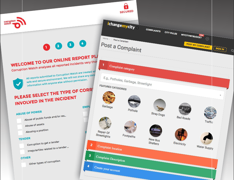 - Crowdsourcing for addressing specific issues and supporting structural change (I Change My City, Fix My Street, Maji Voice, Stop Stock Outs Project, Sauti ya Mtaa, CGNet Swara (later stages), Check My School, Citizen Feedback Monitoring Programme, Corruption Watch (early stages), Daraja Maji Matone) - Initiatives taking this approach seek primarily to connect citizens and either government authorities or elected representatives for resolving specific issues or answering particular queries / concerns. The process of reporting is often highly structured, with participants needing to provide specific information in a specific format, allowing data to be quickly manipulated and analysed.