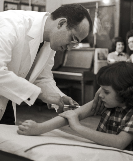 This 60-minute documentary on polio tells the story of Dr. Jonas Salk and his research team, who pulled together with a community and a nation (the United States, or US) which "rolled up its collective sleeves to conquer the most-feared disease of the 20th century." The Shot Felt 'Round The World. Specifically, it focuses on events that are, according to the producers, less widely known - events that took place from 1949-1955: "a beloved, polio-afflicted President inspired a nation to send their dimes to the unlikely place of the University of Pittsburgh....By highlighting the stories of the unsung heroes who waged war with Salk and his team against the 'summer plague,' the documentary...reveals the story from the insiders' point of view and gives audiences hope that the spirit of cooperation which spurred the development of the Salk polio vaccine could be a model for solving contemporary problems."