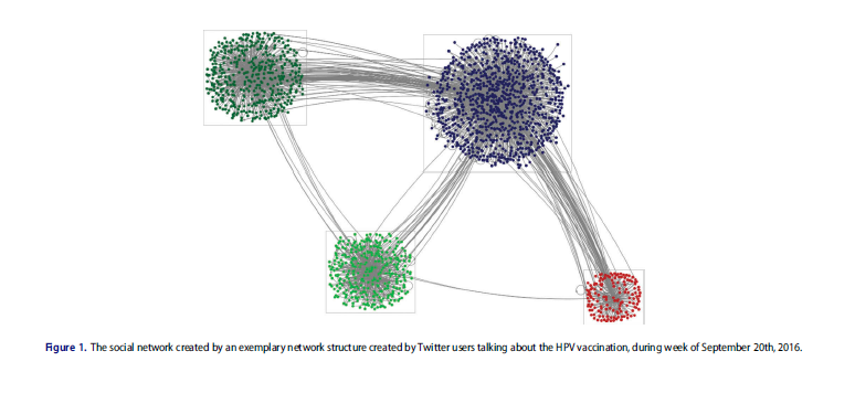 Twitter activity related to HPV vaccination was collected in one-week period datasets, starting 9/20/2016 for 10 weeks. The researchers combined network analysis using NodeXL, Linguistic Inquiry and Word Count (LIWC) for computer-aided analysis of the content, and traditional human-coding for more in-depth analysis of the conversation and shared hyperlinks.