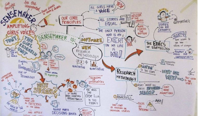 - Data analysis stage - For example, Sensemaker® uses narrative and analyses with software capable of a large number of narratives allowing representative use and participatory involvement, such as in Girl Hub. Community Score Card from CARE uses the participatory process to diagnose and improve relationships among a programme's users and service providers. "CARE later developed a quantitative women empowerment measure and health worker measure drawing on WE-MEASR© (Womens Empowerment-Multidimensional Evaluation of Agency, Social Capital and Relations)"