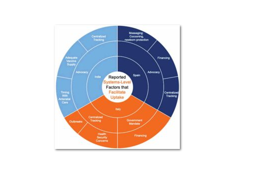 Looking more closely at the main drivers of decision-making, findings both from the literature review and interviews reveal that variance by country. For example, in Italy, elections and the influence of a female physician as health minister were mentioned as a driver of decisions. In fact, advocacy was described as a prime facilitator of uptake in Spain and India. However, the lack of physician buy-in amongst some was noted as a significant challenge in Spain. In India, maternal health advocates and those representing marginalised populations were deemed important, but many interviewees commented that providers, in general, were not making the recommendation, perhaps because they are not convinced due to a lack of local studies of vaccines in pregnant women. Some respondents questioned whether maternal health was a priority in India.