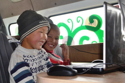"Bilim" means knowledge in the Kyrgyz language, and "e" indicates electronic media. "eBilim" brings together two important components of this project: locally accessible knowledge and current technology and media. With the aim of minimising the rural-urban digital and knowledge gap, the eBilim vehicle is a refurbished minibus equipped with laptops and a database of over 3,000 text, audio and video educational resources. It also serves as a dynamic platform, assessing and responding to the information needs of 15 remote mountain communities in Naryn, Ak-Talaa, and At-Bashy districts of Naryn province in the Kyrgyz Republic. The project is implemented by the Mountain Societies Research Institute (MSRI) of the University of Central Asia (UCA) with financial support from the Deutsche Gesellschaft für Internationale Zusammenarbeit GmbH (GIZ).