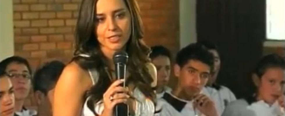 Trujillo explains that she will be telling the story of Revelados, the Colombian television and social media platform on teen sexuality created as a rights-based, social change communication programme. She structures her talk abound seven points, principles of communication for social change presented through anecdotes. Film clips of several types of programming, fiction and non-fiction, are presented as samples of the ongoing dialogue that the project intends to spark among adolescents and young people on sexuality and sexual health and rights. She explains the complicated sociodemographic in Colombia, including the effects of poverty, armed conflict, paramilitary presence, and drug trafficking.
