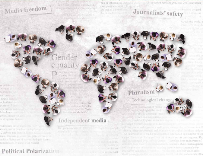 In brief, this study recognises the changing roles that political actors, internet companies, and audiences are playing in shaping information environments nationally, regionally, and globally. It examines transformations in journalism and changes for different types of users and producers of information facilitated by new information and communication technologies (ICTs); for example, the reader learns that the past five years have seen a shift from widespread acceptance of a principle of limited liability for internet companies to increasing calls for intermediaries to be more active as mediating gatekeepers. At the same time, this report demonstrates the continued relevance of the vision of press freedom put forward in the Windhoek Declaration. Endorsed by the UNESCO General Conference in 1991, this declaration clarifies that press freedom necessitates media freedom but is also wider than this dimension. It underlines that effective press freedom needs to be underpinned by, and realised through, a media environment that is not only legally free but that also provides for media pluralism and independence. Over the years, it has become clear that another distinctive underlying component for press freedom is safety for public expression. It has also become evident that gender-sensitive considerations are required throughout all dimensions of press freedom.